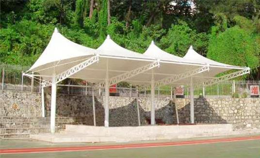 4、形式:是由多种高强度塑料薄膜材料及加强构件(钢架结构、钢梁或钢丝绳)根据一定方法使其內部造成一定的预张应力以产生某种空间外形,做为笼盖构造,并能承受一定的外载荷作用的一种空间布局方式;